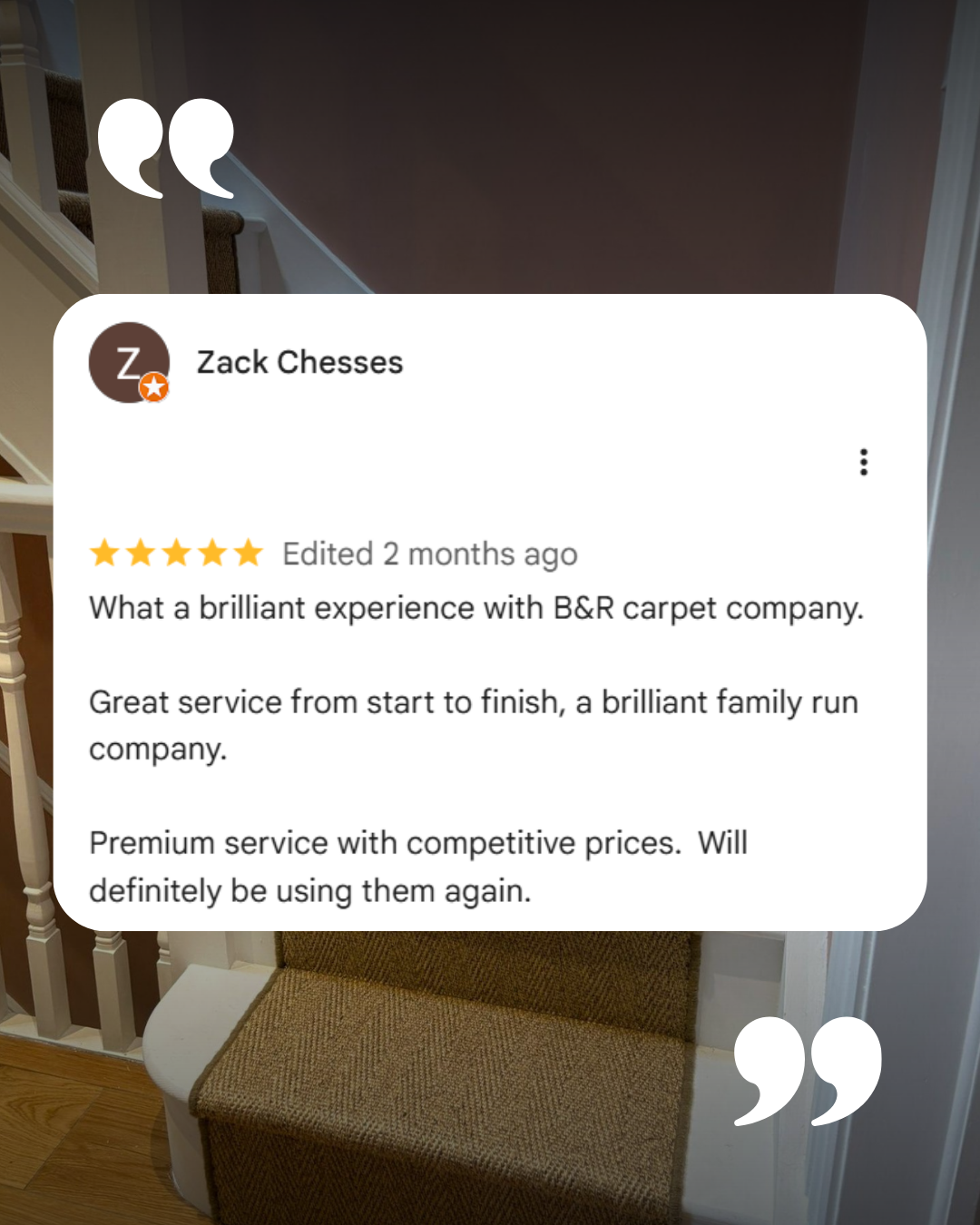 The team followed the two-phased approach to installation. The first phase was particularly important as the client requested profile fitting for the runner, requiring highly skilled planning and preparation of the stairs and runner for a snug fitting.